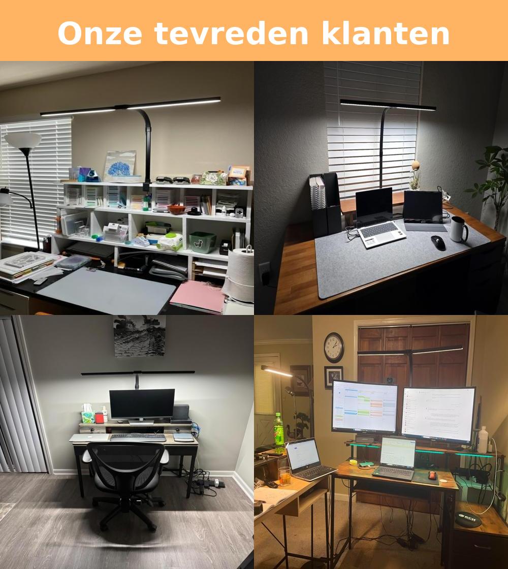 Daarna stapten we over op de Lampen District Bureaulamp LED Dimbaar, en dat bleek een wereld van verschil: stevig gebouwd, krachtig licht en volledig instelbaar naar onze werkbehoeften.