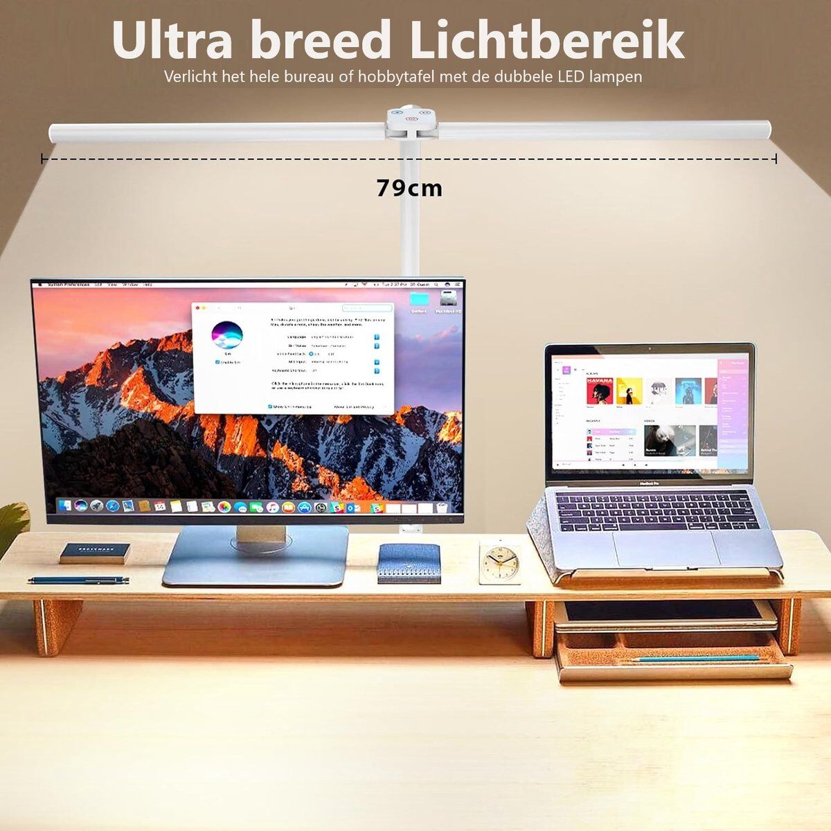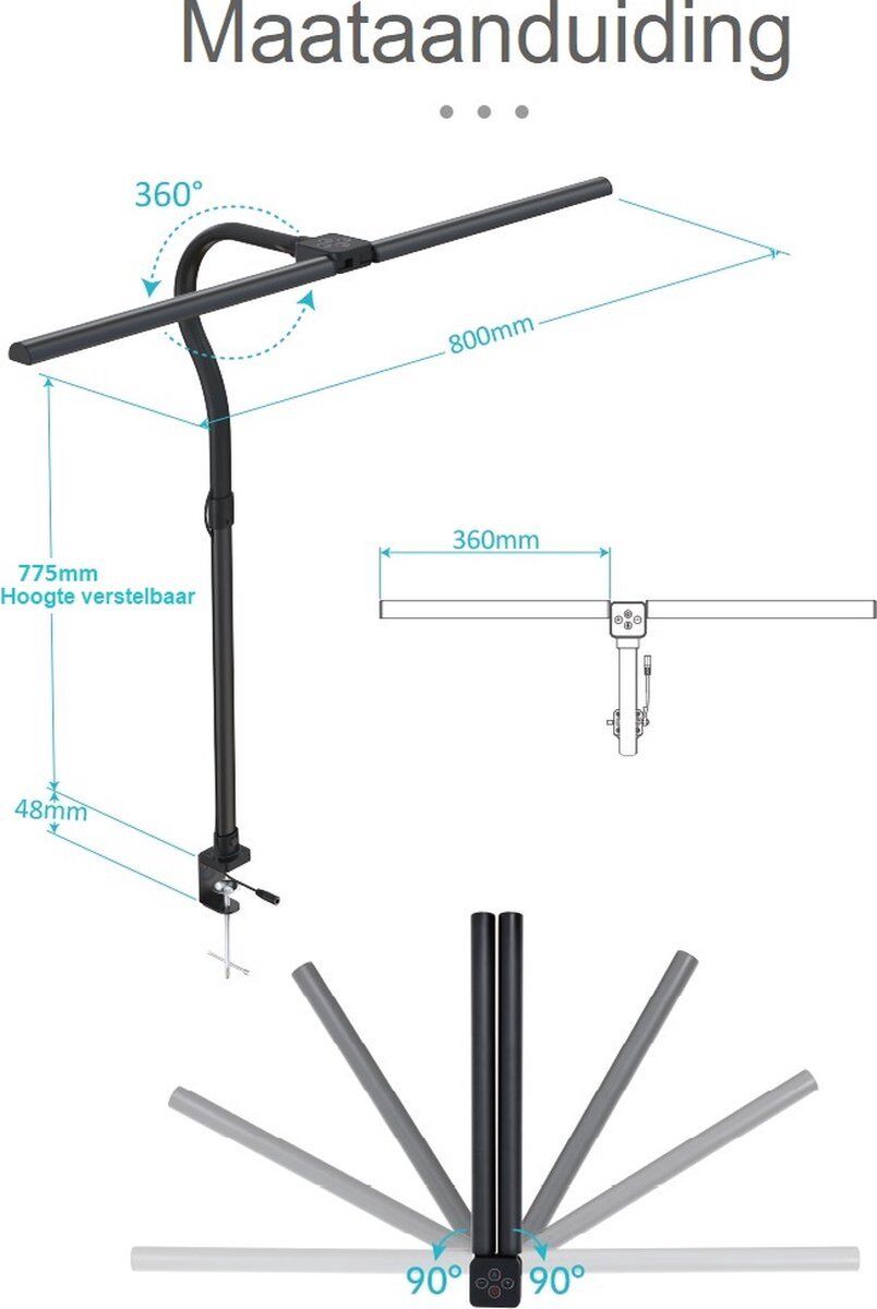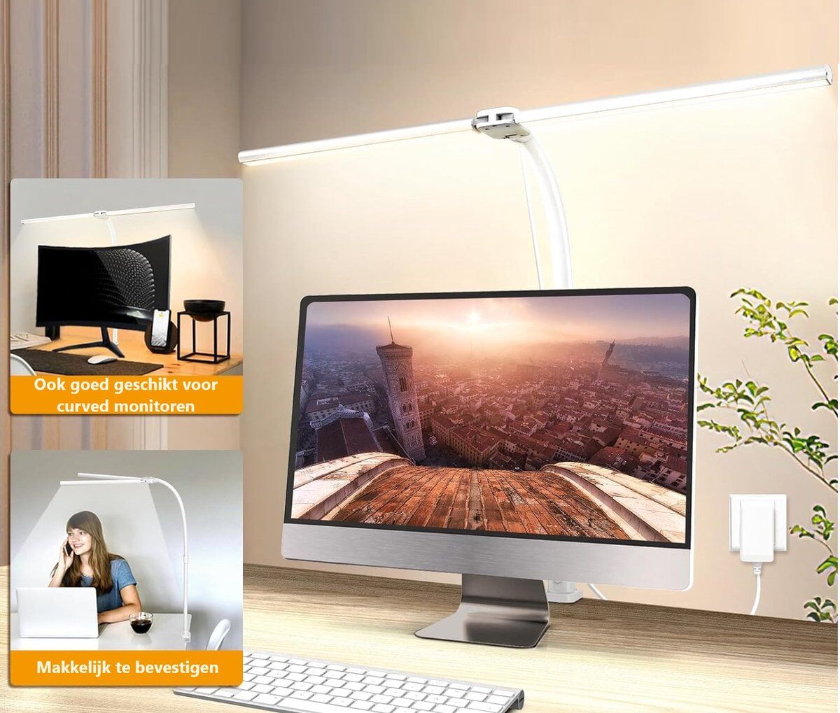 De bureaulamp is uitgerust met LED verlichting met een maximaal vermogen van 24 Watt, wat zorgt voor een gelijkmatige verdeling zonder storingen, verblinding of flikkeren. Dit is ideaal wanneer je gebruik maakt van een groot bureau. De bureaulamp is speciaal ontworpen voor personen die de beschikking hebben over meerdere beeldschermen.