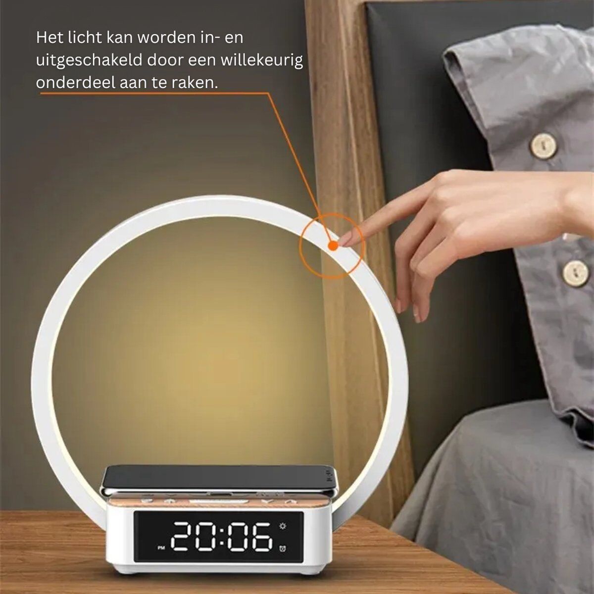 Opgeruimde ruimtes brengen rust in je hoofd en verbeteren je nachtrust. Deze 4-in-1 wake-up light vervangt je nachtlampje, wekker en oplader. Hierdoor zorgt het voor minder rommel op je nachtkastje. Bovendien is dit apparaat niet alleen een nachtlamp, maar ook een wake-up light. Het helpt je op een natuurlijke manier wakker worden. Het zachte licht wordt langzaam feller naarmate je wektijd nadert, je op een ontspannen manier wakker wordt.
