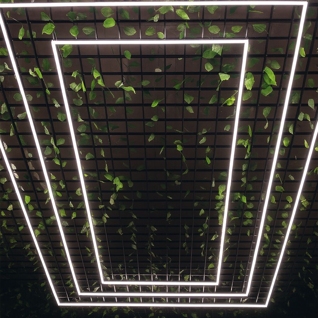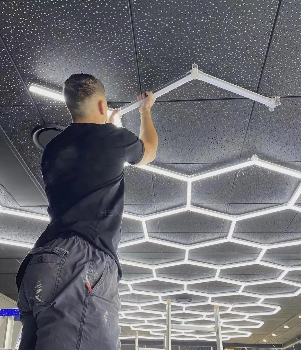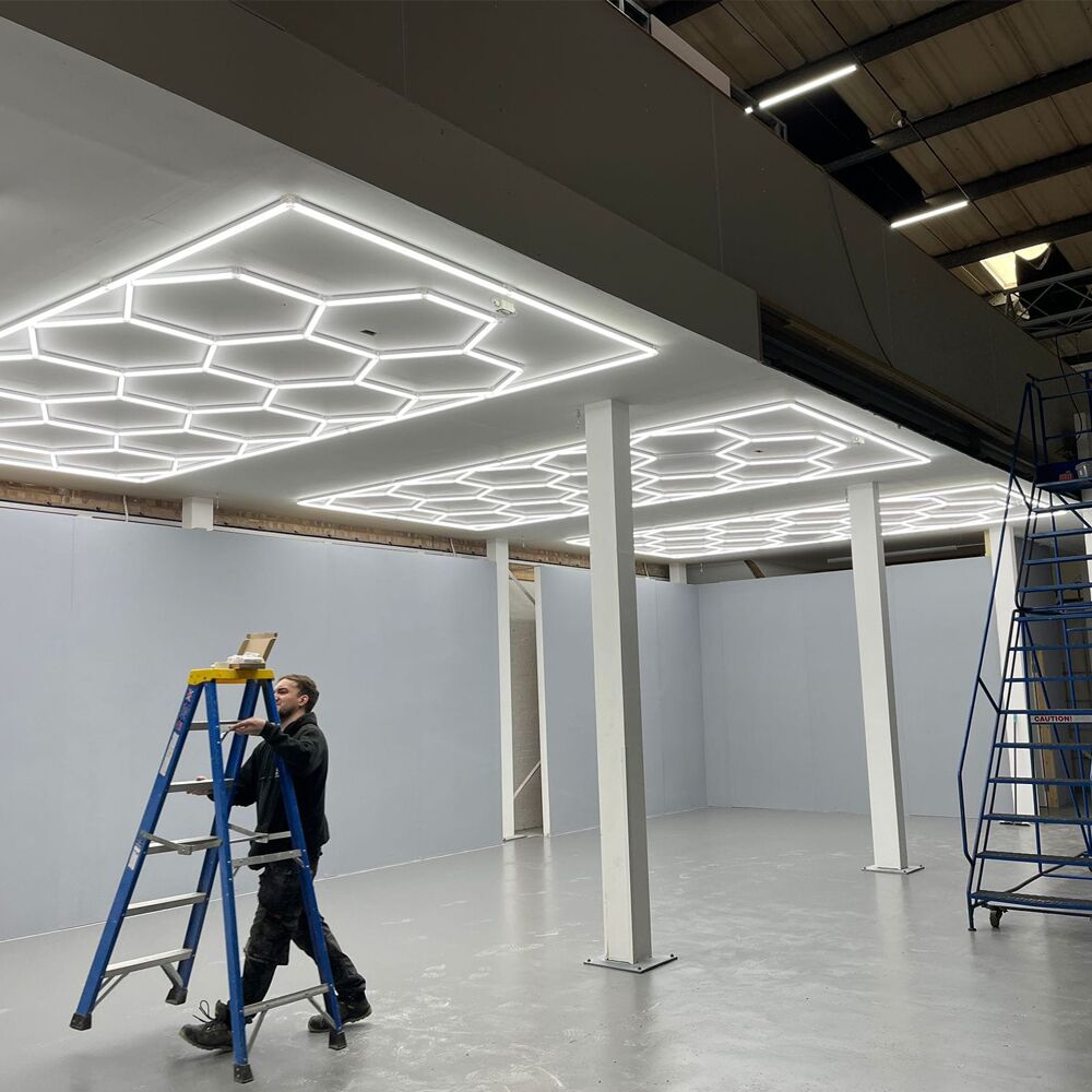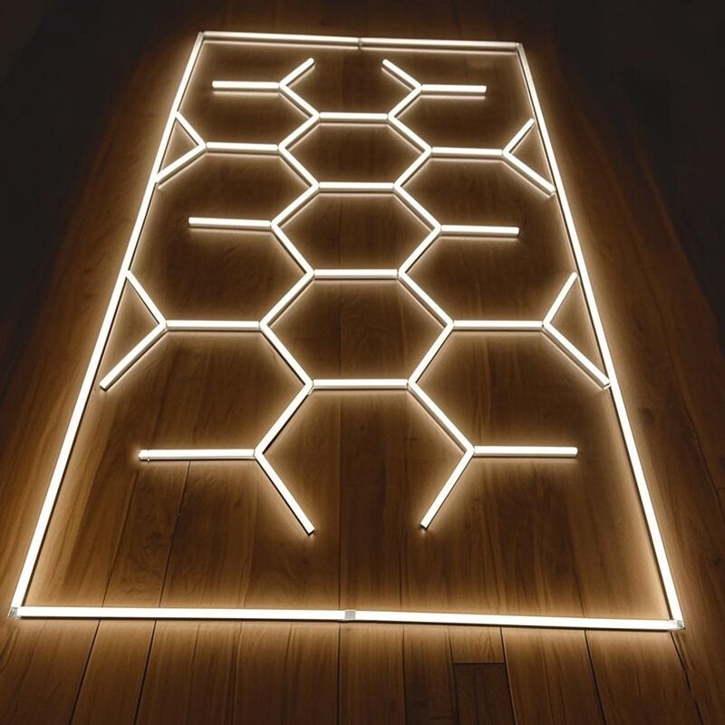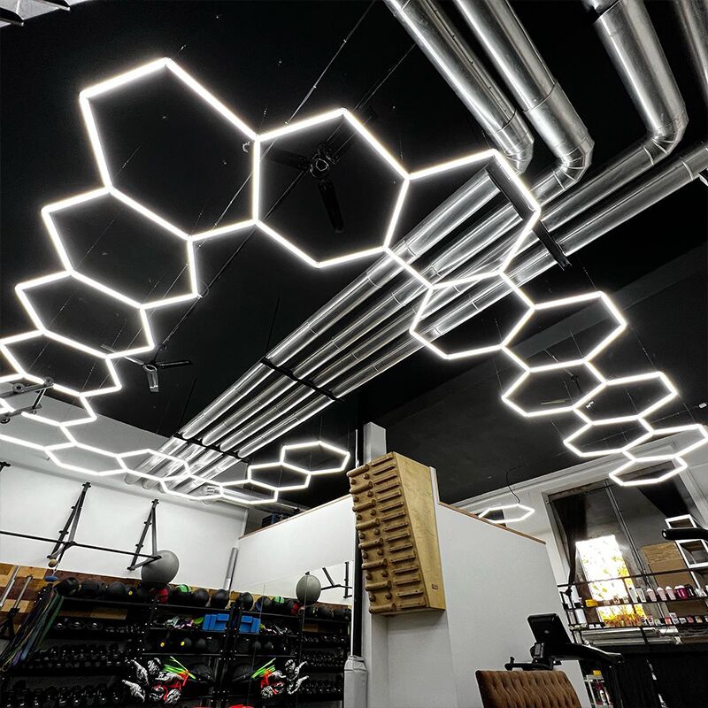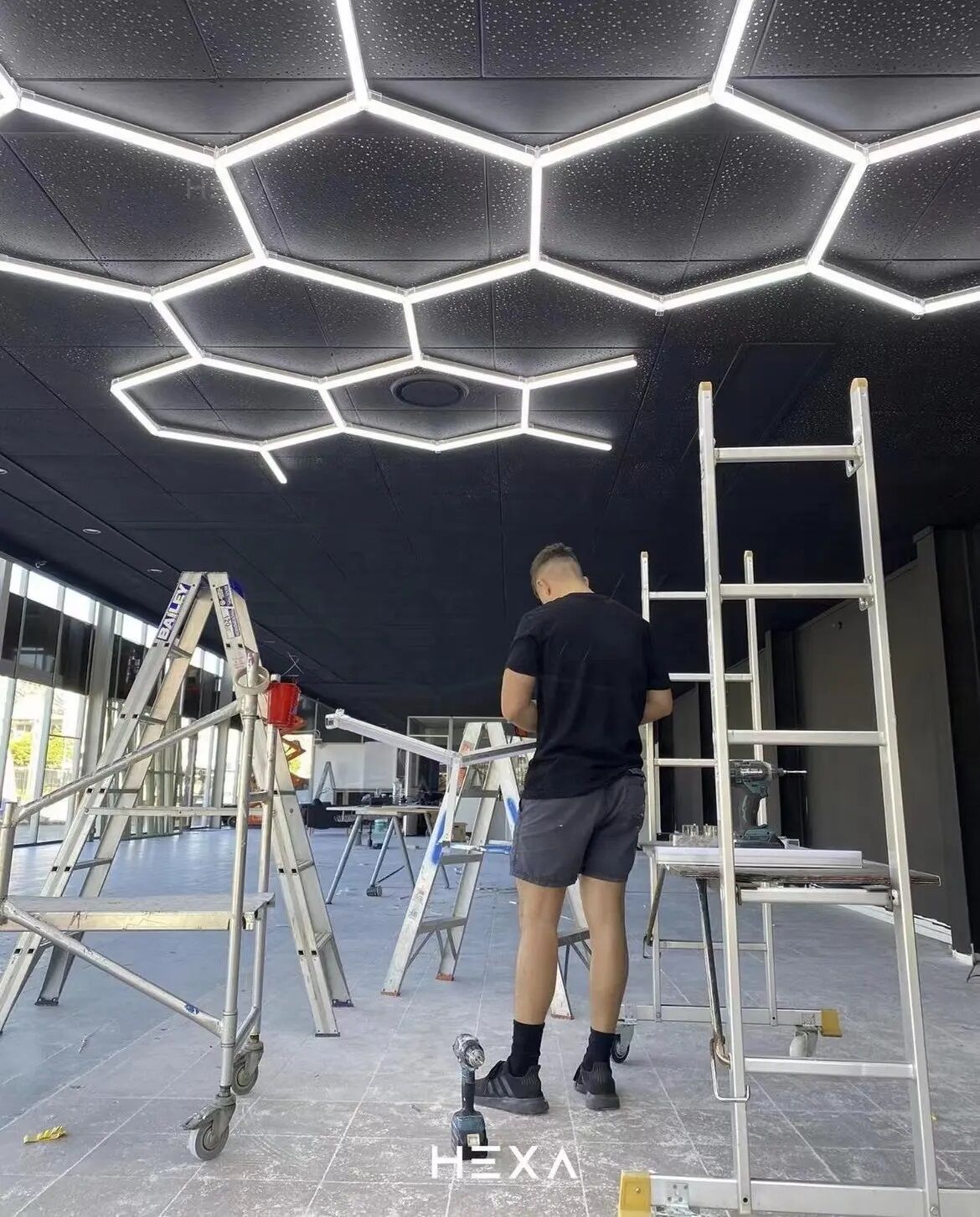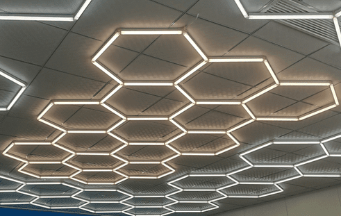 Onze LED hexagon verlichting wordt gebruikt als moderne kantoorverlichting, opvallende showroomverlichting, sfeervolle horeca-oplossing