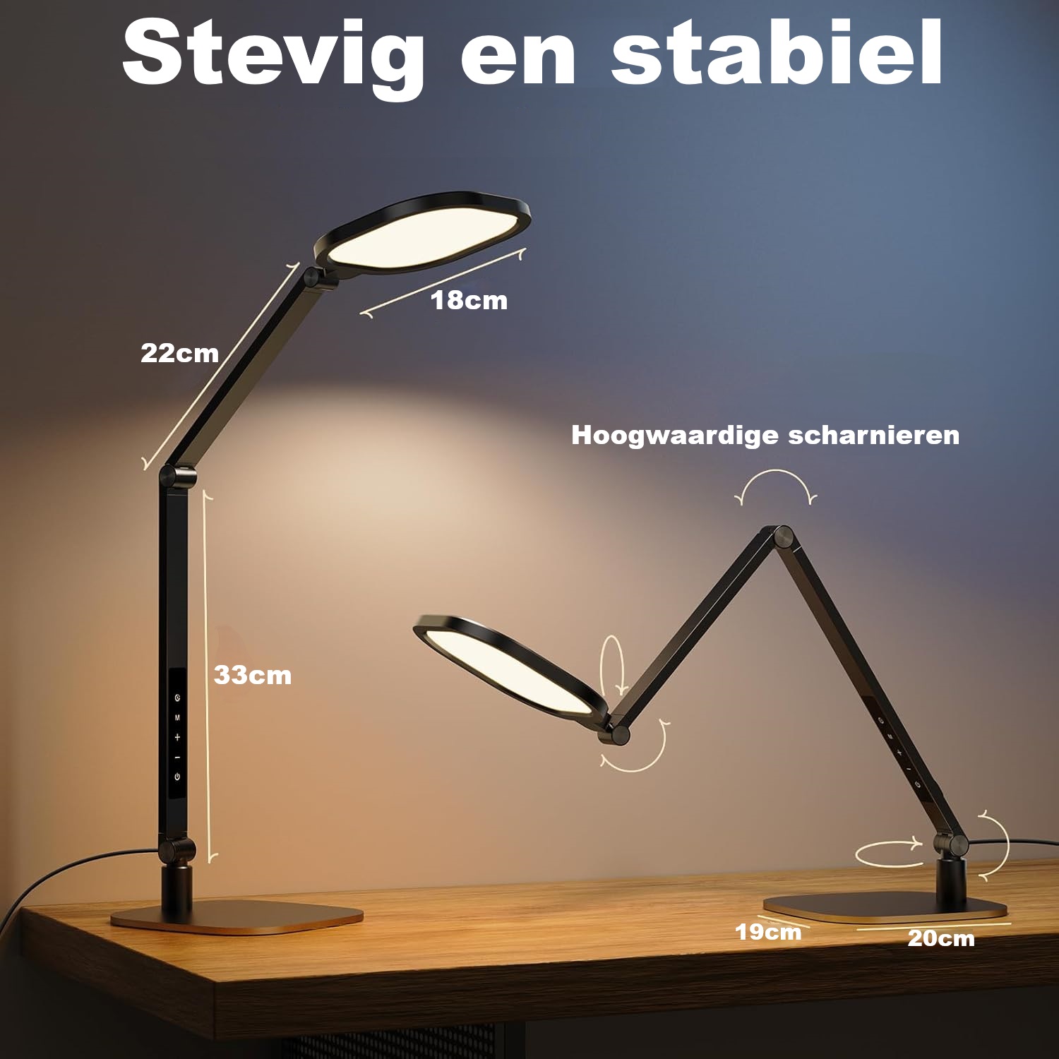 De swing-arm bureaulamp heeft 5 draaipunten en een maximale hoogte van 84 cm, waardoor je de lamp eenvoudig kunt aanpassen. Het 18 cm brede lampenkop draait tussen 180° en 360°, waardoor het de perfecte keuze is voor je home office, slaapkamer, studeerkamer of woonkamer. Het stevige ontwerp met duurzame pivot-scharnieren kan tot 200.000 aanpassingen aan, voor jarenlang betrouwbaar gebruik.