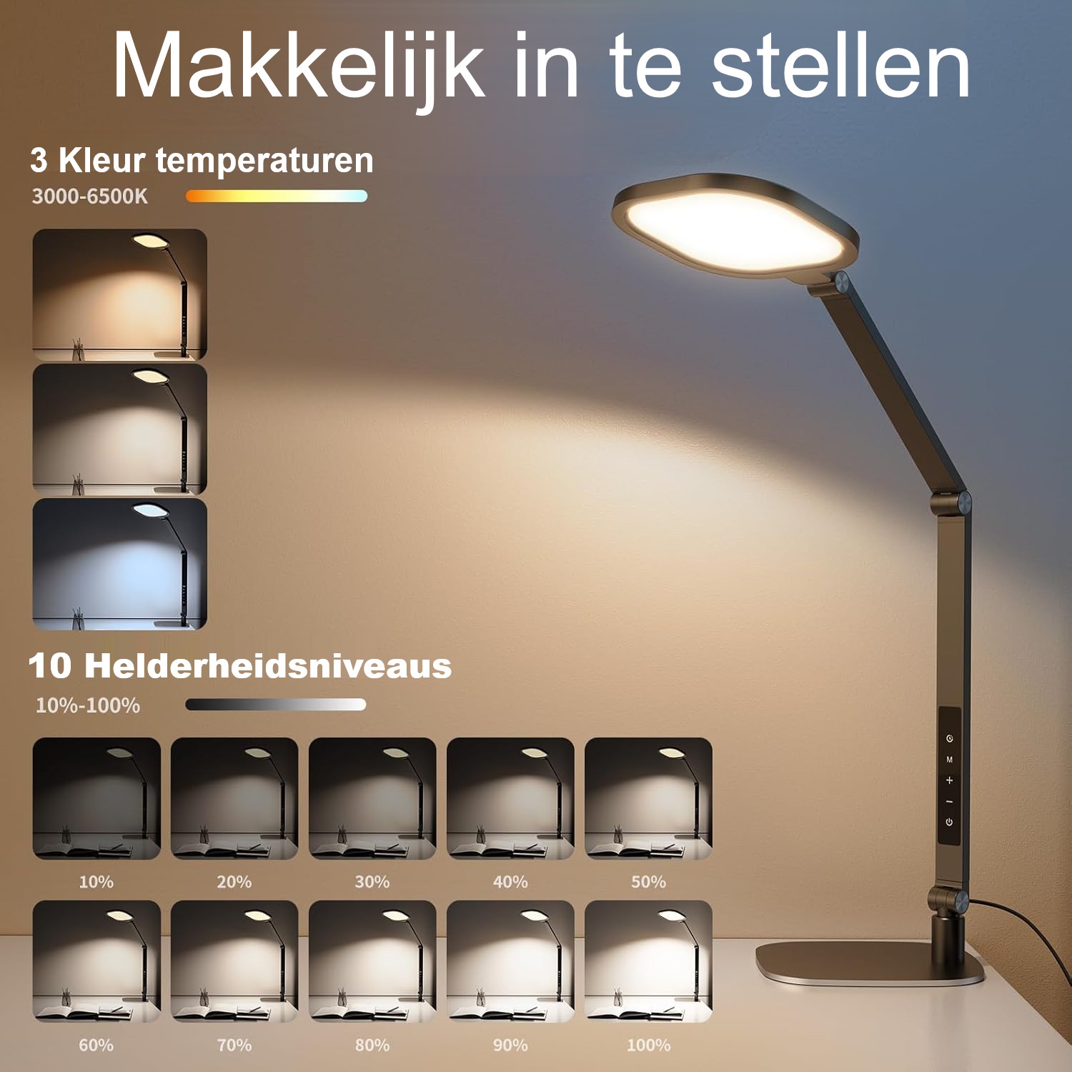 Dankzij de touch-bediening pas je eenvoudig helderheid en kleurtemperatuur aan. De lamp beschikt over een memoryfunctie, zodat je instellingen onthouden blijven, en een timerfunctie (1 uur / 30 minuten), ideaal voor studeer-, werk- of creatieve sessies. Perfect voor tekenen, schrijven, puzzelen, coderen of knutselen.