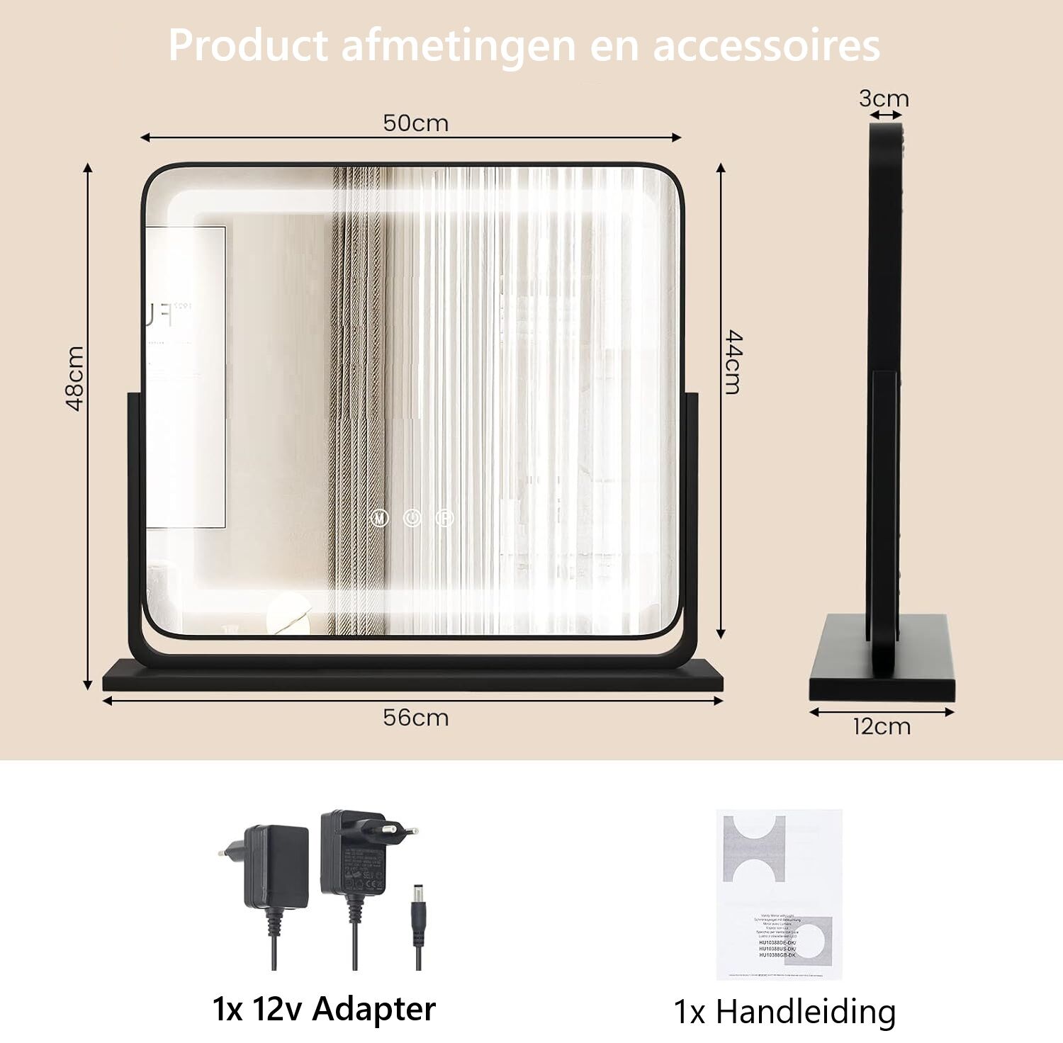 Til je beautyervaring naar een hoger niveau met deze luxe make-upspiegel met verlichting. Dankzij de heldere LED-verlichting, intuïtieve touchbediening en hoogwaardige afwerking is deze spiegel ideaal voor zowel dagelijks gebruik als professionele make-up toepassingen.