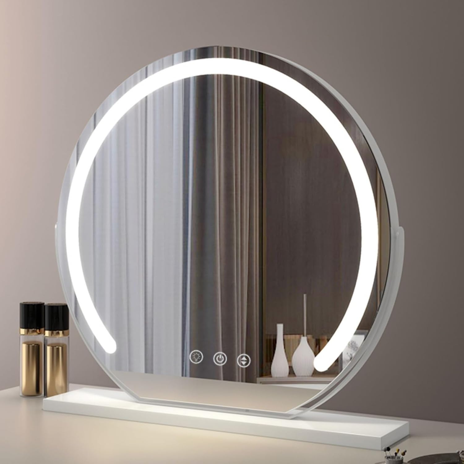 Prachtige spiegel van topkwaliteit! Stevig metalen frame, helder glas en drie lichtstanden die je makkelijk met touch-bediening kunt aanpassen. Staat stabiel, draait soepel en kwam perfect verpakt aan. Echt een aanrader voor wie houdt van kwaliteit en design!
