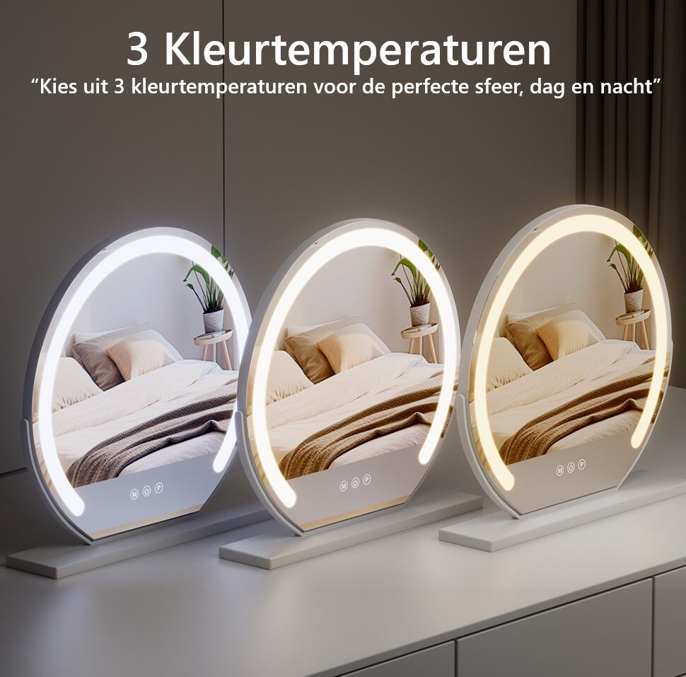 Kies uit warm wit, natuurlijk daglicht of koel wit licht. Met deze make-up spiegel met LED-verlichting