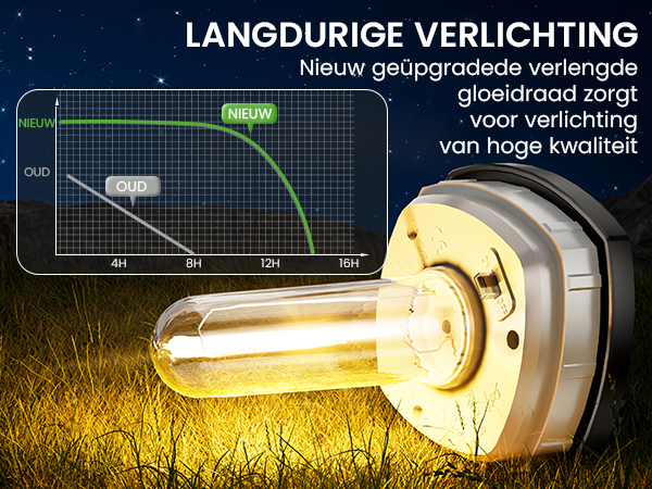 - Brandtijd: 10–12 uur bij volledige oplading