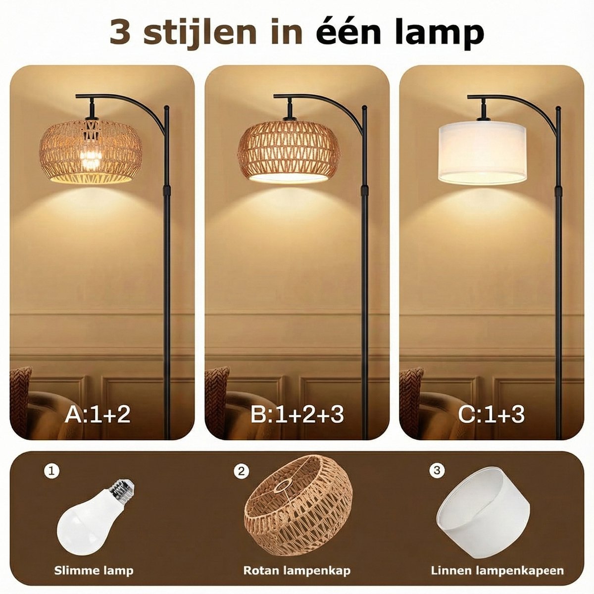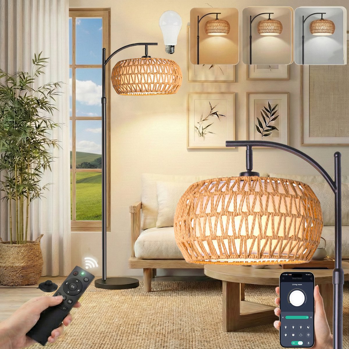 Smart Vloerlamp Rotan & Linnen – 3-in-1 Design met App & Afstandsbediening