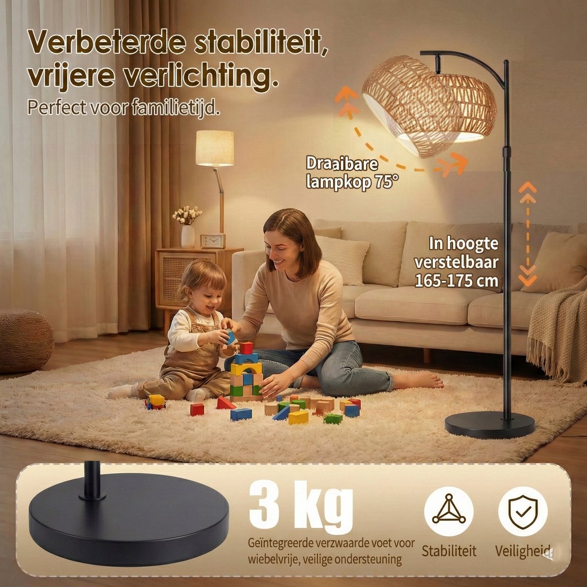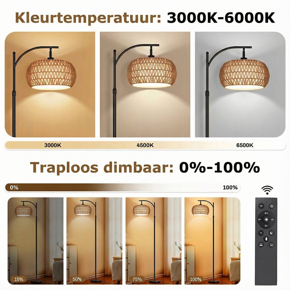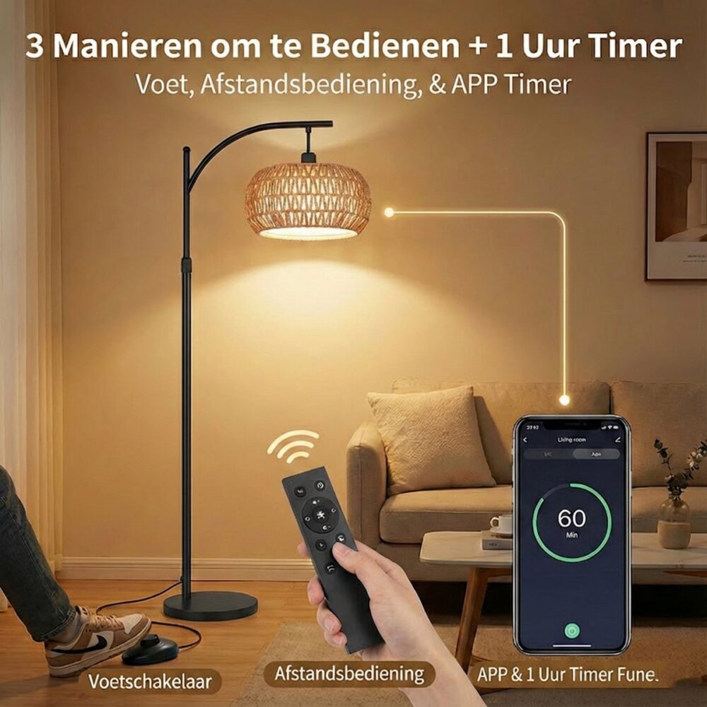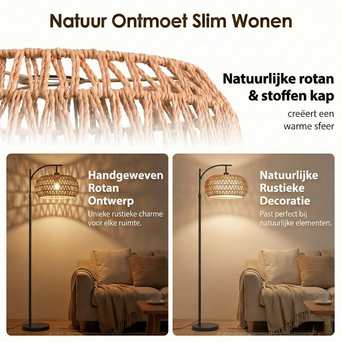 Vloerlamp Rotan – Dimbaar met App & Afstandsbediening