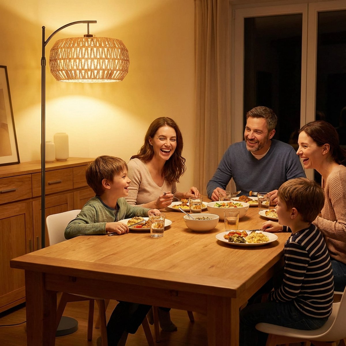 Creëer de ultieme sfeer in huis met deze veelzijdige Smart Vloerlamp. Deze unieke lamp combineert een natuurlijk Boho-design met moderne smart-technologie. Of je nu kiest voor de rustieke rotan kap of de strakke linnen look: deze zwarte vloerlamp past zich volledig aan jouw interieur en wensen aan.
